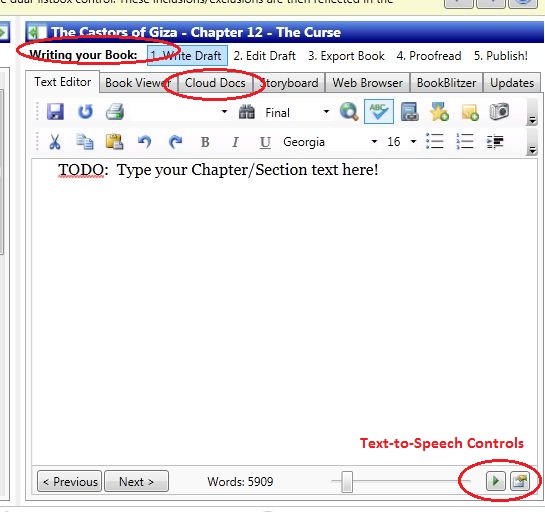 Another change was the addition of the “Cloud Docs” tab, which makes it easy to store your book online to GoogleDocs or DropBox. The “Viewer/Exporter” tab was renamed to “Book Viewer”, and a “Writing Your Book” info-bar was added above the tabs to guide users though the software when writing their book. Each Step has a clickable tip which displays additional information.